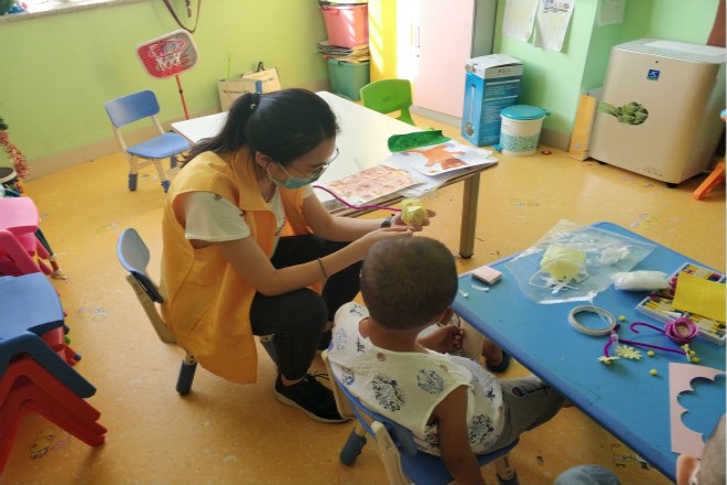志愿者把提前准备好的破旧卡片、塑料瓶等物品交给他们,鼓励其动手实践,变废为宝。随后 在志愿者们的详细讲解下,孩子们开始学习制作饰品,以便以后装饰房间。志愿者们一边循序渐进地引导孩子们,一边又鼓励孩子们开动脑筋,在制作的饰品上添加自己的创意。在孩子们与志愿者们的共同努力下,各式各样的饰品顺利完工。学习阶段结束后,为鼓励孩子们继续为环保事业做贡献,志愿者为他们颁发礼品作为奖励。