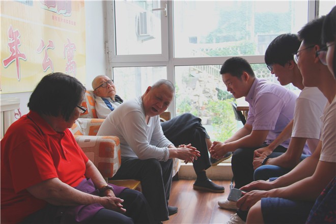 上午8点30分,六名志愿者准时到达阳光福缘老年公寓。在公寓负责人的指挥下,志愿者们分工合作迅速清理房间,为老人们提供一个干净整洁的活动场所。志愿者们热情地陪老人谈心,为他们捶背捶腿,询问老人们近来的身体状况。为活跃气氛,志愿者们合唱《父亲》、《团结就是力量》和《打靶归来》等经典曲目,老人们听后赞不绝口,其中一位志愿者还主动上场表演擒敌拳,得到老人们的一致好评,纷纷举手鼓掌。老人们见到志愿者也是十分开心,热情地与志愿者互动,为他们讲述自己年轻时的往事。同时,老人们叮嘱志愿者好好学习,为国家的事业做出自己的贡献。志愿者们被老人虽年老但仍心系国家未来的精神所感动,纷纷表示一定会努力提高自己,不负老人嘱托。