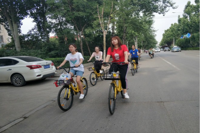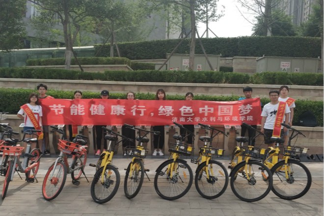 早上八点半,同学们准时到达新西门集合。随着一声出发,同学们敏捷的骑上车子,伴着习习微风,迎着和煦的朝阳,踏上了自己的骑行之旅。本次骑行路程是从济南大学新西门出发,到达济南中海广场环宇城。路程相对较远,但同学们并没有被这点困难所打倒,他们整齐的排好,按列行驶,谨遵交通规则,长龙般的自行车队成为一道靓丽的风景线。同学们在骑行过程中相互鼓励,其中一名同学讲到:“汽车的使用越来越大众化,汽车排出的尾气也会给环境造成污染,但我们此次的骑行,是环保的、是绿色的,不仅无污染,还会让我们锻炼身体,希望以后有更多的人参与到‘保护环境,绿色出行’的活动中来。”